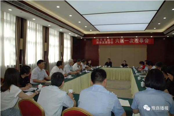 2018年8月2日上午,河南省企业形象发展协会在郑州召开六届一次理事会。本次理事会,首先由河南省企业形象发展协会原常务副会长方刚同志做第五届理事会工作简要回顾。协会的五届理事会近年来围绕两条主线开展了工作,一方面是秘书处的日常工作重点逐步转移到为各地河南商会服务上来,一方面是发挥企业形象协会的优势、继续坚持举办每年一届的河南新年经济论坛。