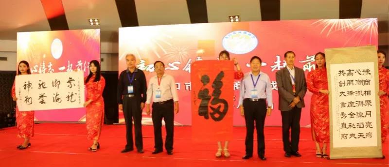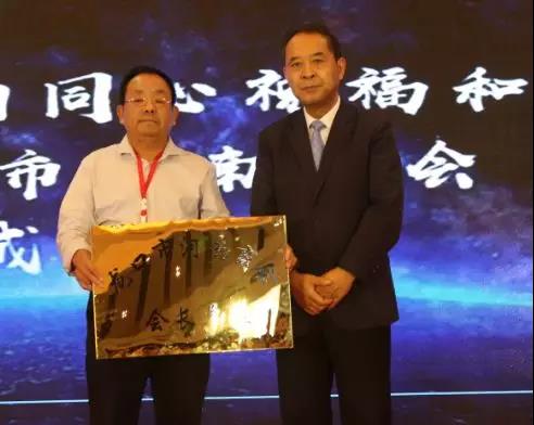 龙口市工商联主席王海珍为龙口市河南商会颁发商会牌,监事长王世魁代表商会接牌。