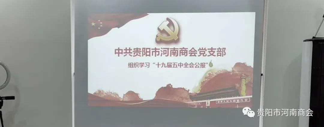 2020年10月30日下午,贵阳市河南商会组织党员、商会领导、入党积极分子等学习《中国共产党第十九届五中全会公报》(以下简称“公报”),会长张虎、党支部书记吴延庆、秘书长贾景峰、副会长贾少华、李陪君,副秘书长张朋飞,以及党员孙征康,岳贺松等参加了学习活动?;嵋橛傻持Р渴榧俏庋忧熘鞒?。