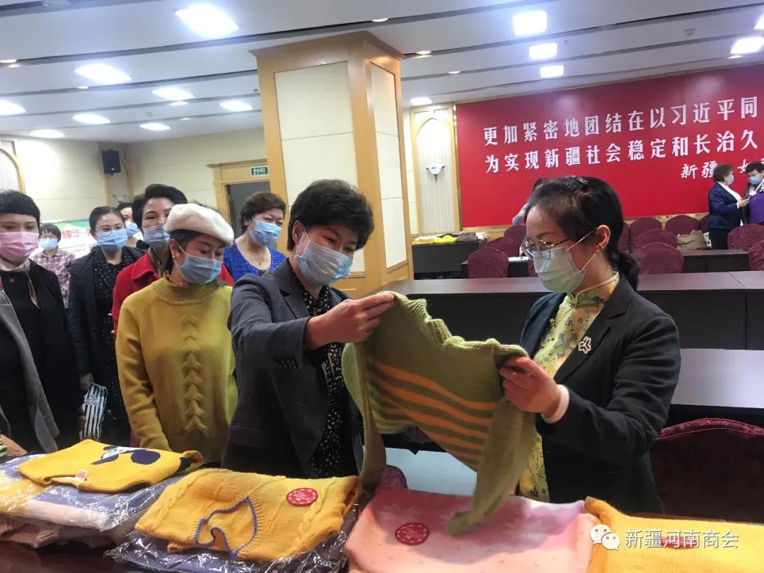 随后举行了新疆河南商会爱心毛衣捐赠仪式。商会妇联共给南疆儿童捐赠毛衣115件,自治区妇联代表接受了捐赠。