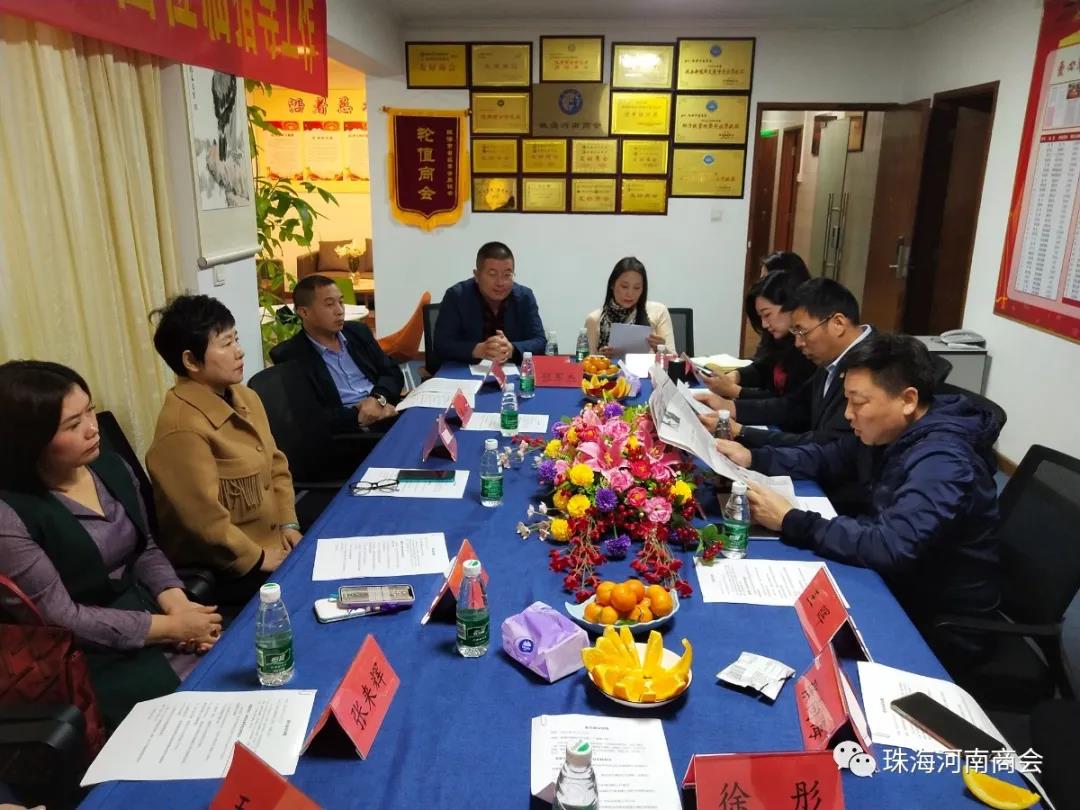 12月25日下午,珠海河南商会召开会长办公会议,学习贯彻中央经济工作会议精神和市工商联(总商会)年度工作总结及表彰决定?;岢ふ跃⒓嗍鲁ぱ疃?、执行会长王晖、常务副会长张向海、张瑞、副会长张赟、张来辉、张力、卜艳立、娄锦霞、张文琴、张军杰,副秘书长王瑛、徐彤、方瑞莲、佟艳军、专职秘书白菲菲等同志参加会议。