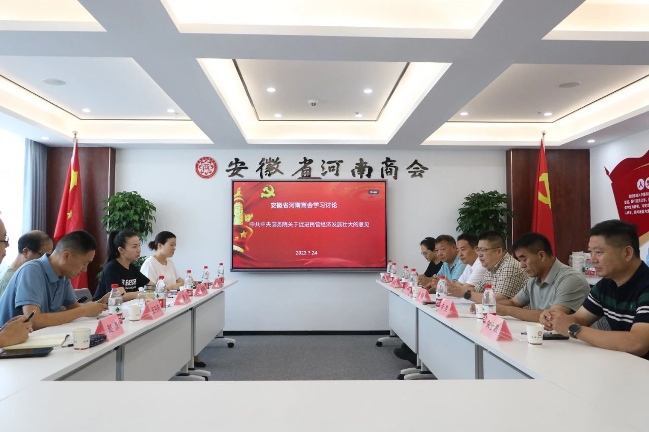 7月19日,《中共中央 国务院关于促进民营经济发展壮大的意见》(以下简称《意见》)发布。《意见》给广大民营企业和企业家吃下定心丸,稳定人心、鼓舞人心、凝聚人心,让企业家更有信心、更有底气、更有干劲。7月24日下午,安徽省河南商会党支部组织部分商会企业家认真学习《意见》,党支部书记、执行会长段猛,执行会长孙晓梅,常务副会长徐远军、王月庆、李党,副会长、法律顾问王小平,副会长宋士波、李泽武、张艳,理事赵杰等参加。豫籍老同志展岩也参加了此次活动。