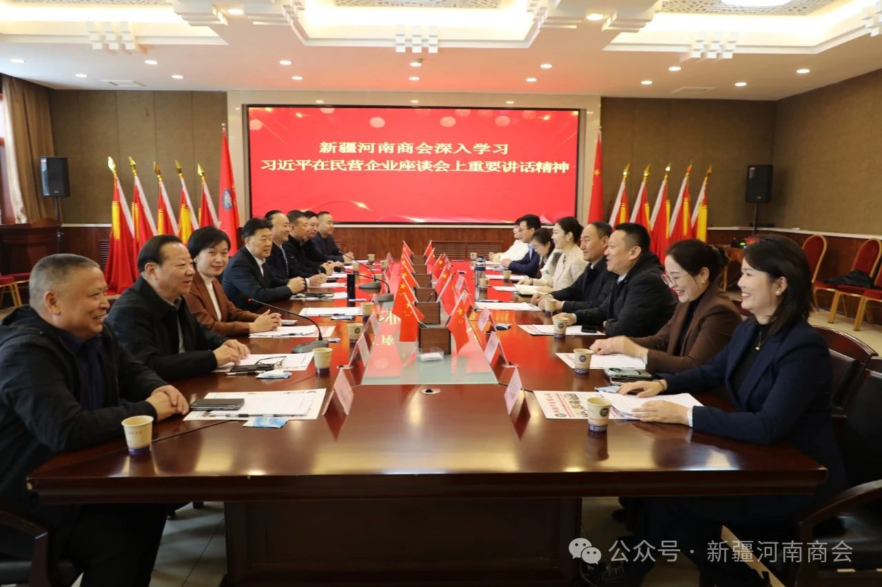 2月19日上午,新疆河南企业联合会(商会)组织学习了习近平总书记在全国民营企业座谈会上的重要讲话精神。大家表示习近平总书记在民营企业座谈会上重要讲话,立意高远、思想深邃、论述精辟、内涵丰富,学习领会后感受很深,令人鼓舞,信心倍增。